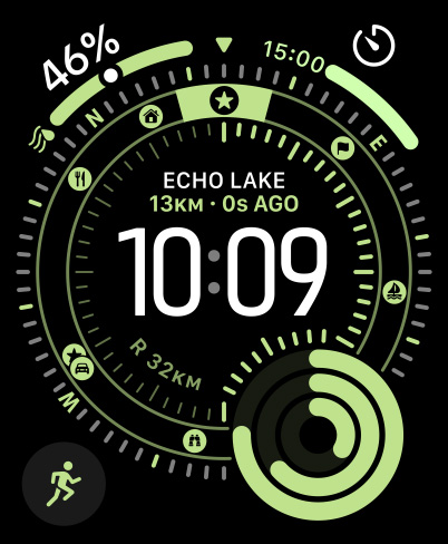 If you need to attract attention when you’re lost or injured, hold down the Action button to activate a siren that can be heard up to 600 feet or 180 metres away.