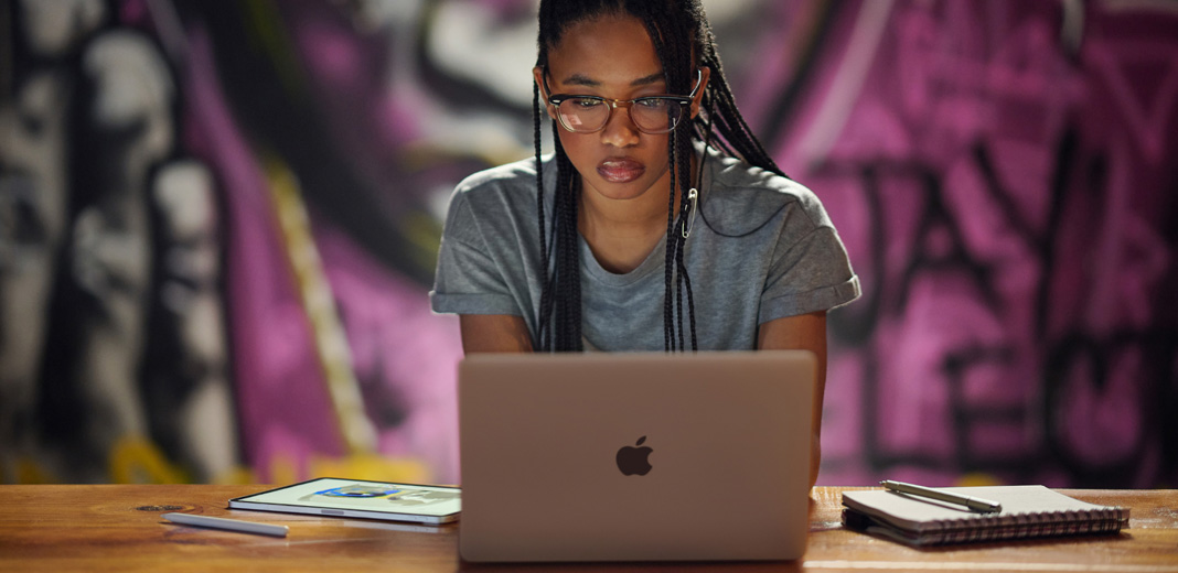 An aspiring singer and songwriter, Max uses pro apps like Logic Pro to make studio-quality music. Find out how he’s adapted to remote learning with MacBook Pro.
