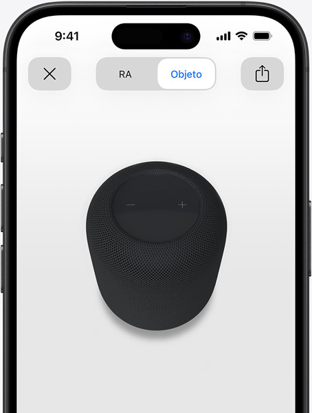 Vista lateral de un HomePod que aparece al avanzar por la página
