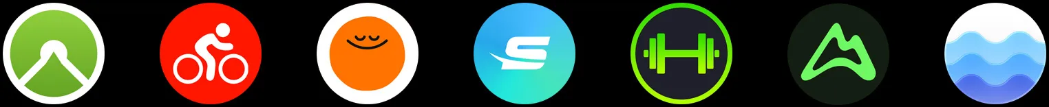 精選 app:Komoot、MapMyRide、Headspace、Swim.com、SmartGym、AllTrails、潮汐、MySwimPro、Gaia GPS、Nike Run Club、Palisades、Paddle Logger、Oceanic+ 以及 Slopes。