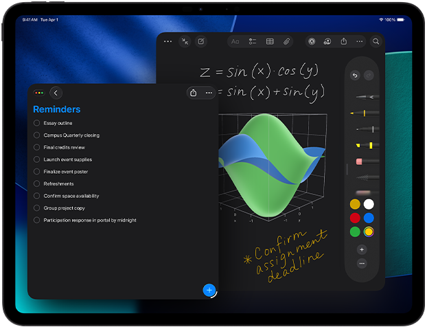 iPadOS 26 memperkenalkan desain baru yang menawan dengan Liquid Glass dan terobosan penyempurnaan yang menempatkan produktivitas iPad Pro di level selanjutnya. Sistem jendela intuitif yang didesain ulang memberi Anda fleksibilitas dan kuasa yang lebih besar. Jalankan aplikasi pro, mainkan game berperforma tinggi, dan kerjakan proyek kreatif dalam ukuran apa pun dengan pengalaman sentuh yang intuitif.