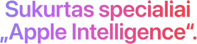 „Apple Intelligence“ – asmeninė dirbtinio intelekto sistema, kuri padės tau lengviau rašyti, išreikšti save ir atlikti darbus. Ji išsiskiria įspūdinga duomenų apsauga, todėl gali nesukti sau galvos – niekas kitas, net ir „Apple“, negalės pasiekti tavo duomenų.1