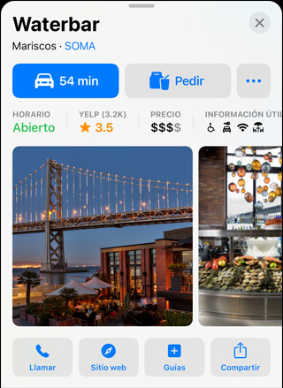 • La actualización a iOS 15, iPadOS 15 y macOS Monterey te permite disfrutar de las últimas funcionalidades de Mapas, como el globo interactivo, las experiencias en 3D para ciudades como San Francisco, Los Ángeles, Nueva York y Londres, el transporte público cercano y mucho más.