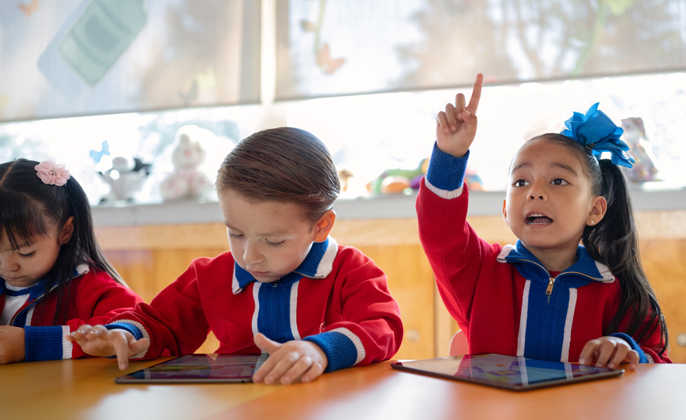 The school’s youngest learners are introduced to iPad with apps like Smile and Learn, which supports learning to read and write. “The little ones are very curious to learn,” says kindergarten teacher Liliana Pescador. “They come in and grab the device, inspect it and move it around. And we want them to start using these tools from a young age. Those who are beginning to read and write are already writing short sentences on iPad.”