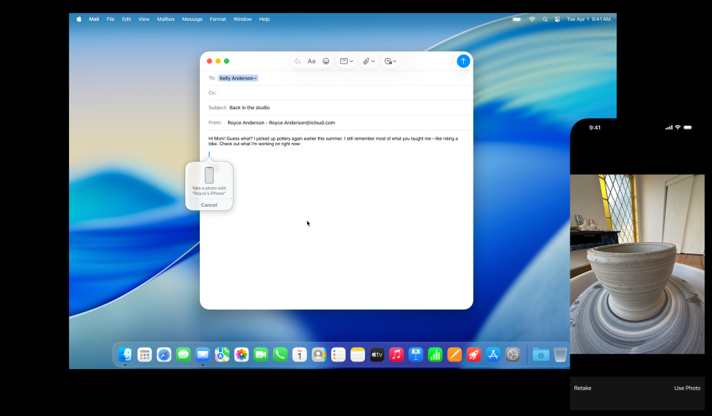 Continuity CameraScan or shoot straight to your Mac.