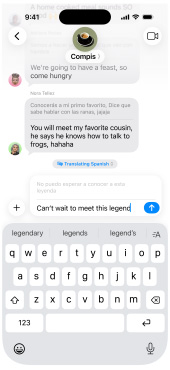 Turn on Live Translation to automatically translate texts in Messages,1 display live translated captions in FaceTime, and get spoken translations for calls in the Phone app.2
