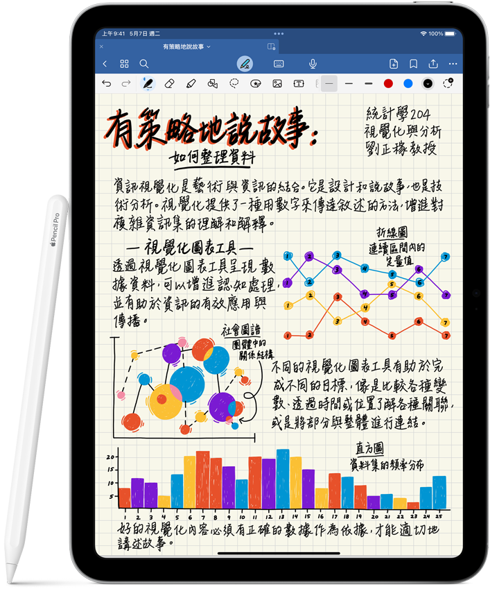 Apple Pencil 為繪圖、做筆記與標示文件的使用體驗,設下直覺易用、精準確實又
